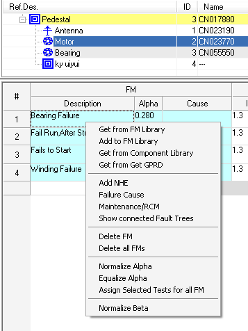 Retrieves all FMs corresponding to the current product tree item in the FMECA Component Library. Note The FMECA Component Library consists of the standard failure modes defined for the specific Family, Item Code and Type of product tree item (by default FMD-97). If one or more of the standard FMs in the FM list already appears in the FMECA grid, it will be ignored. |