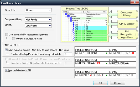 7.If partial recognition is acceptable, choose partial recognition which allows finding part data in the library even if PN, as stated in the BOM/product tree, differs from PN stated in the library.