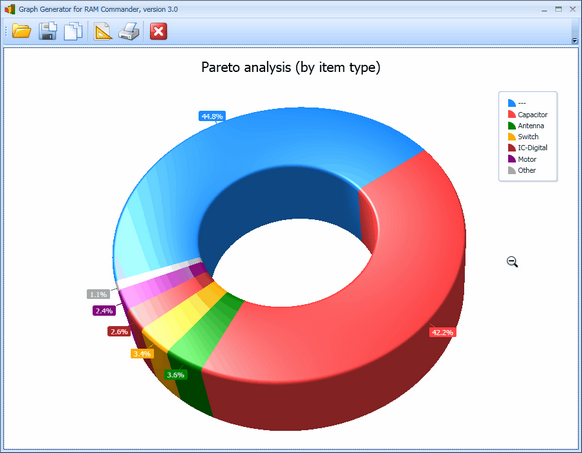 Different RAM Commander modules provide different graphs - like Pareto in Reliability prediction or "Unavailability curve" in FTA module. See particular module chapter for more information.
