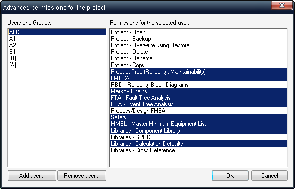 These options may be defined on the project properties screen which you get when create a new project or when edit project properties. User will not be able to open the project or perform specific operation on that project If he does not have corresponding access permissions.